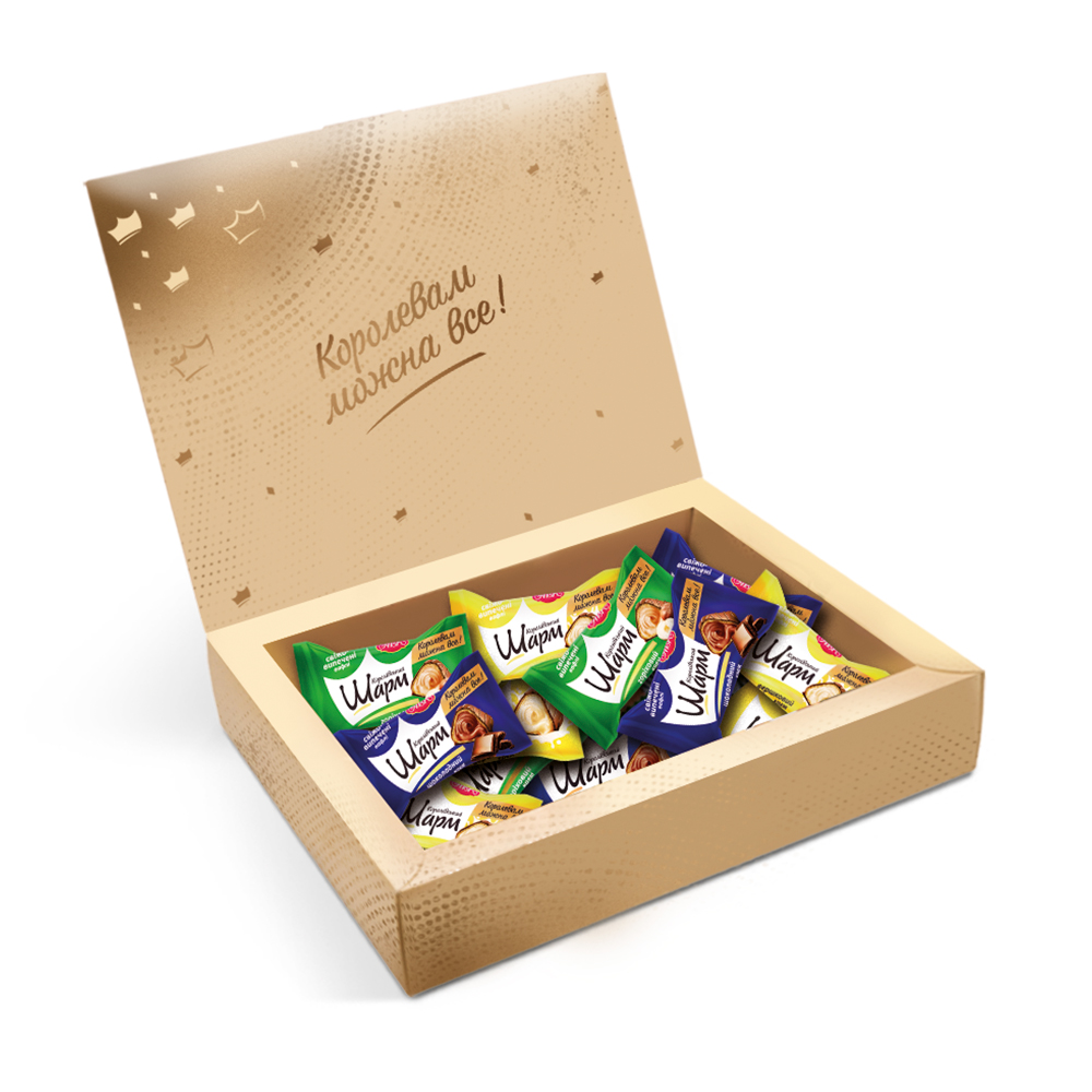 Refined light candies based on voluminous wafers, covered with real milk chocolate with delicate cream! The unique shape of the pyramid emphasizes sophistication and modernizes "Royal Charm". A mix of three different candies: salted caramel cream (with notes of maple syrup and natural sea salt), nut cream (based on hazelnut paste), butter cream (gentle and delicate)