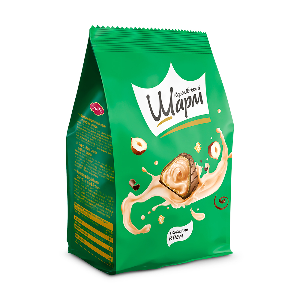 "Royal Charm" with coconut filling and whole almond covered by white chocolate glaze, kg