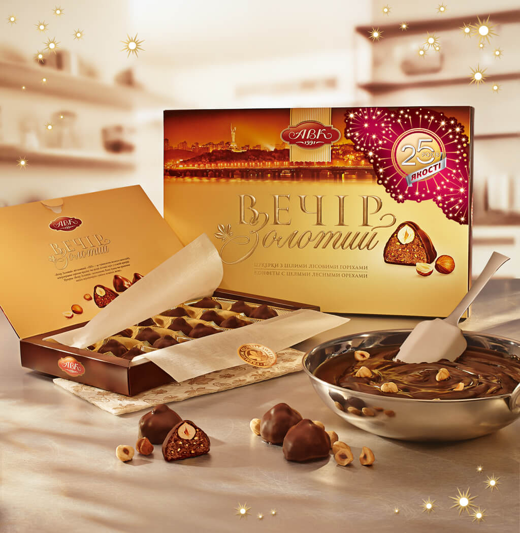 Команда АВК понад усе любить свою справу. Ми щасливі дарувати задоволення мільйонам людей, тож і власне свято хочемо розділити з кожним. З нагоди 25-річчя компанія випускає улюблені солодощі українців спеціальними лімітованими партіями. Найсолодші мрії втілено у святковій серії наборів чорного та молочного шоколаду в плитках. На додачу найпопулярніші продукти АВК отримають нову упаковку з особливим ювілейним дизайном. Це наша щира вдячність відданим поціновувачам смаку та якості шоколаду АВК.